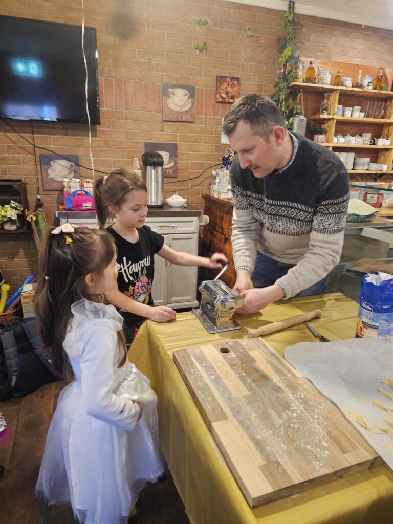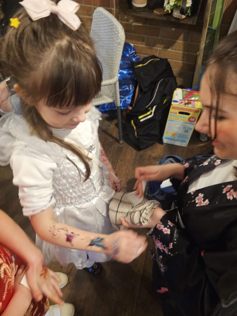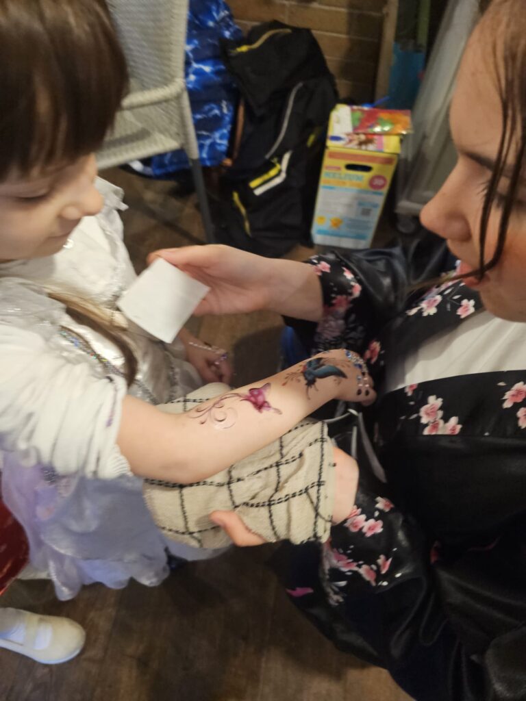 Atrakcji nie brakowało! Dzieci mogły ozdobić swoje dłonie wodnymi tatuażami, zamienić się w tygrysa, wróżkę lub pirata dzięki malowaniu twarzy, a także spróbować swoich sił w pieczeniu chrupiących faworków. Śmiech i radość rozbrzmiewały w całym budynku, a energia małych uczestników zdawała się nie mieć końca!