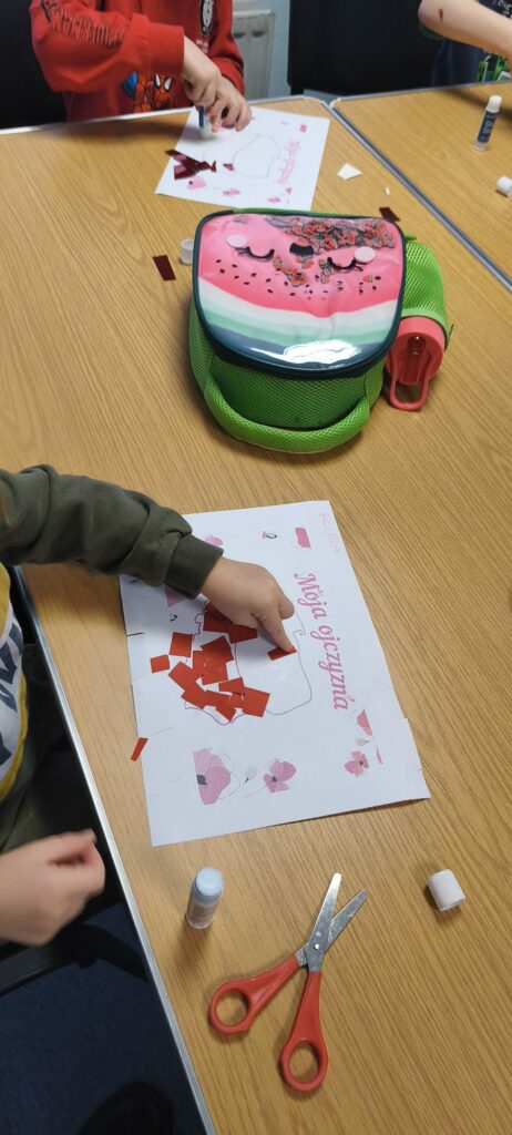 Dzieci z dużym zaangażowaniem uczestniczyły w zajęciach, dzieliły się swoimi spostrzeżeniami i zadawały pytania. Integralną częścią obchodów były również prace plastyczne, podczas których uczniowie tworzyli biało-czerwone dekoracje, symbole narodowe oraz prace inspirowane tematyką niepodległościową.