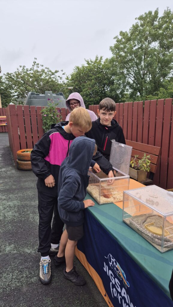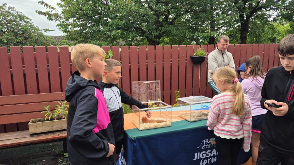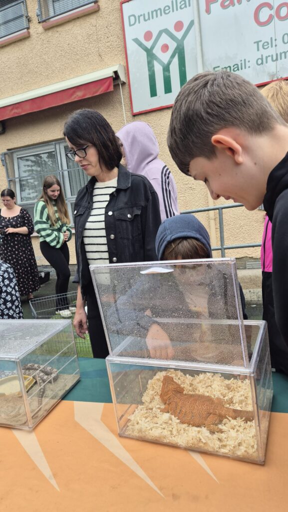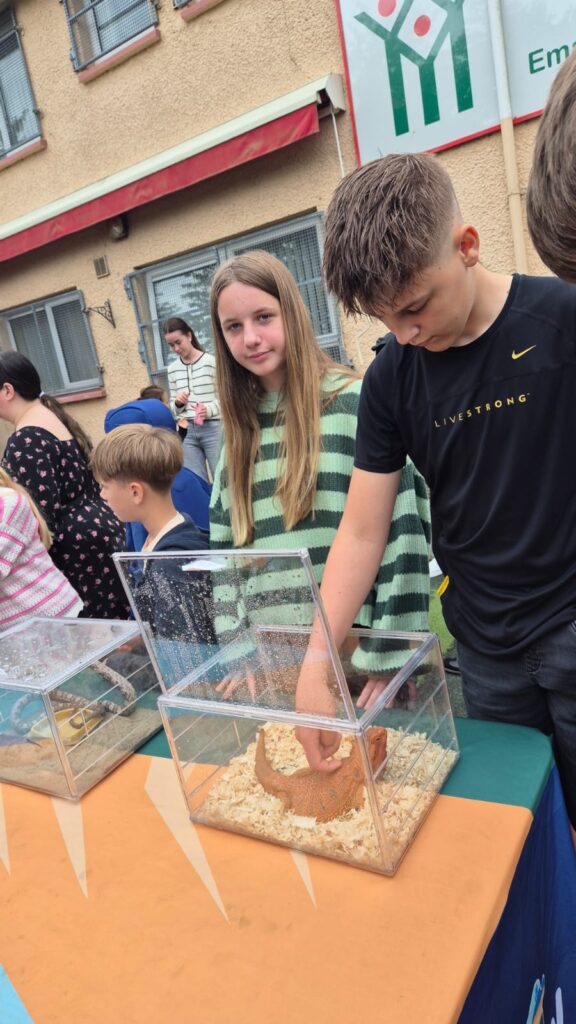 Dzieci miały okazję z bliska zobaczyć, a nawet pogłaskać takie zwierzęta jak: baranki, alpakę, świnkę, królika, jeża, żółwie, szynszylę, a także bardziej egzotyczne stworzenia – węże, gekona, tarantulę, a nawet wiewiórkę! Spotkanie wzbudziło mnóstwo emocji – od ciekawości, przez radość, po pełne zachwytu pytania.