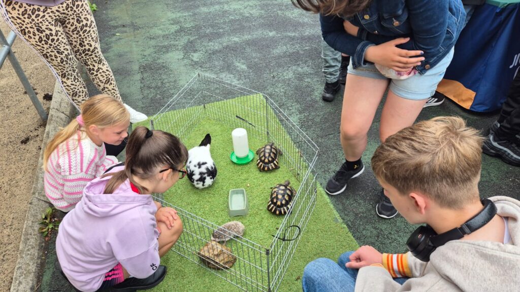 Z okazji zakończenia roku szkolnego przygotowaliśmy dla wszystkich naszych uczniów wyjątkową niespodziankę – wizytę mobilnej mini farmy! Tego dnia nasz ogród zamienił się w małe zoo, pełne fascynujących i przyjaznych zwierząt.